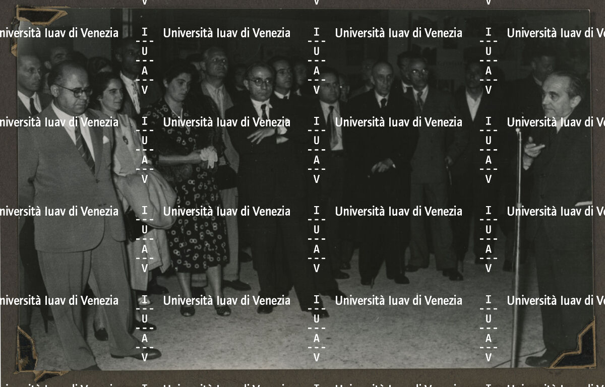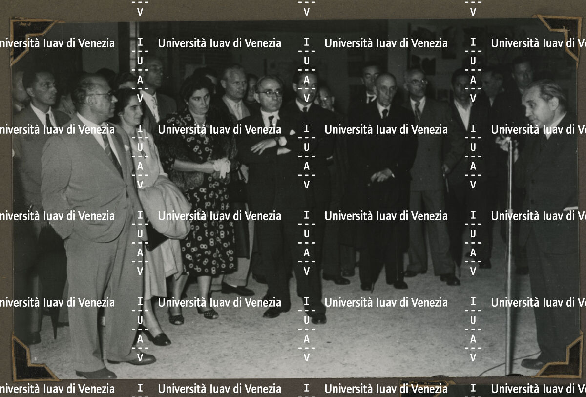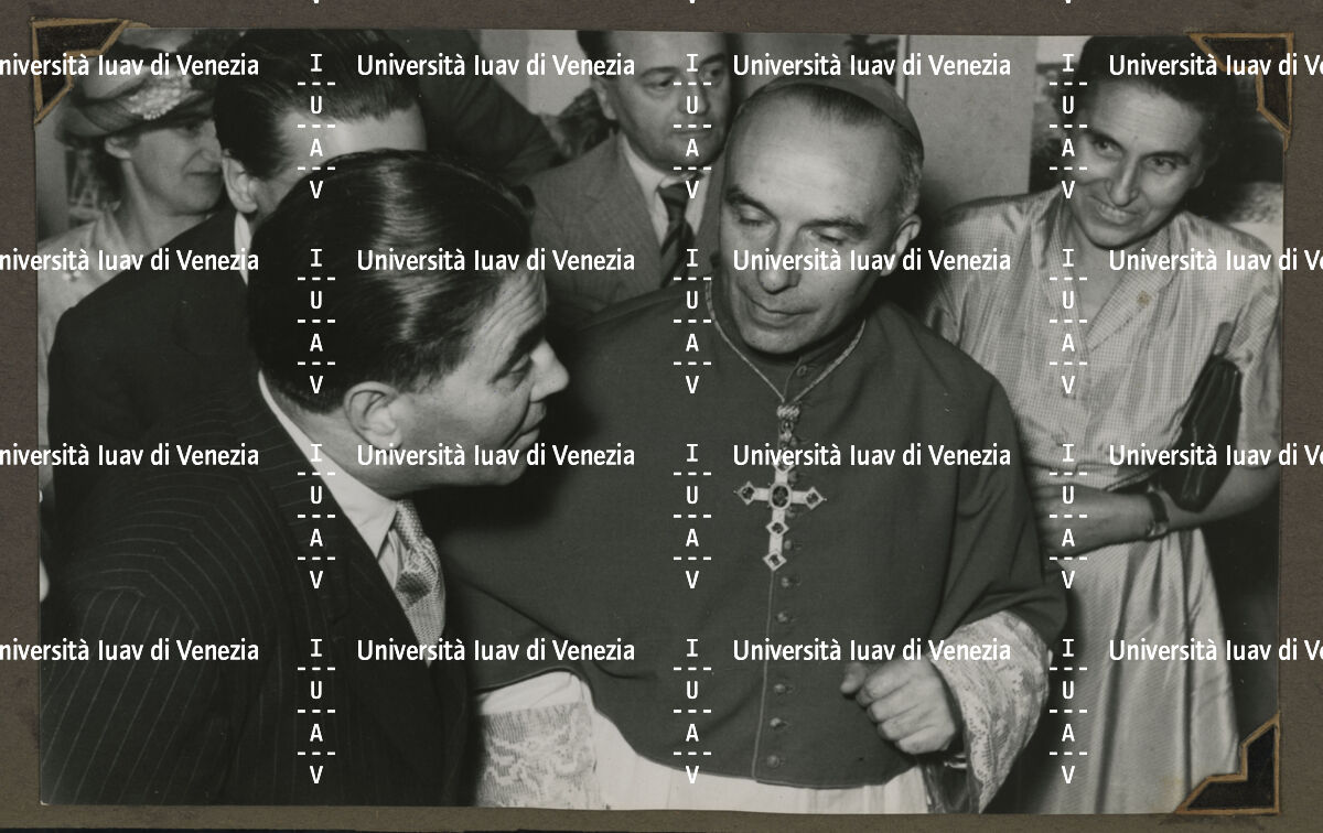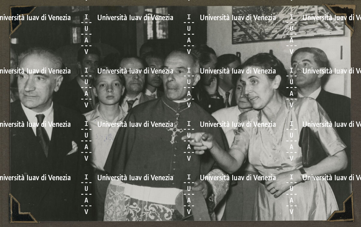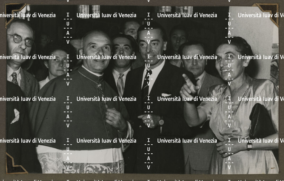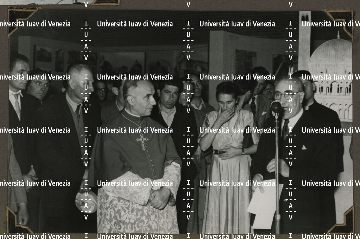 Inaugurazione della "Mostra del restauro di monumenti e opere d'arte danneggiate dalla guerra nelle Tre Venezie", Basilica Palladiana, Vicenza 1949 alla presenza del vescovo Giovanni Urbani.
