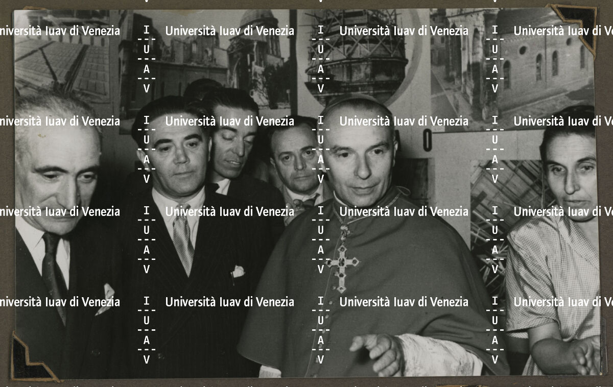 Ferdinando Forlati in sopralluogo al cantiere per il restauro della chiesa degli Eremitani di Padova e del castello di Susegana.