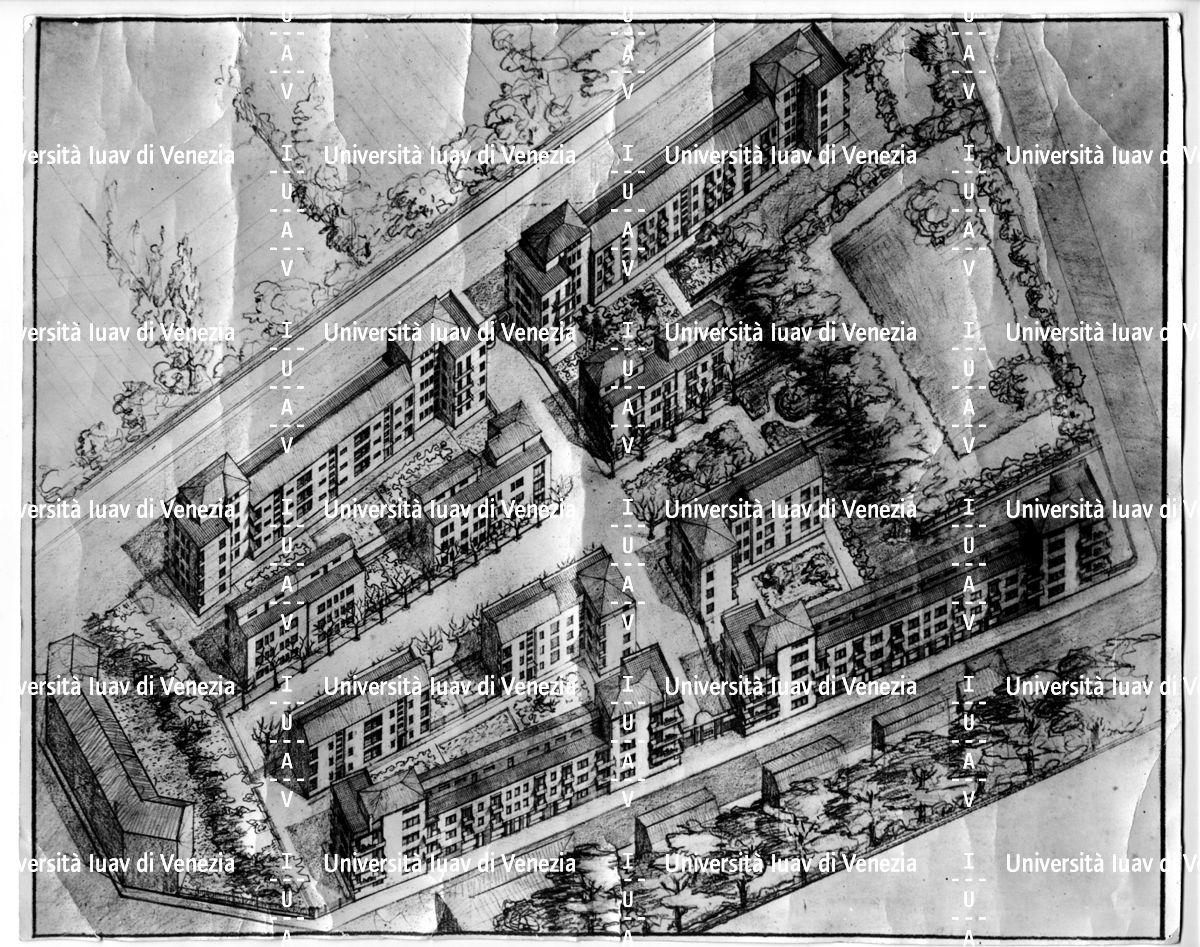 [Fotografia del disegno del progetto di Francesco Gusso per le case dell'Istituto autonomo case popolari di Venezia in via Scarsellini a Marghera]