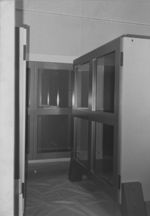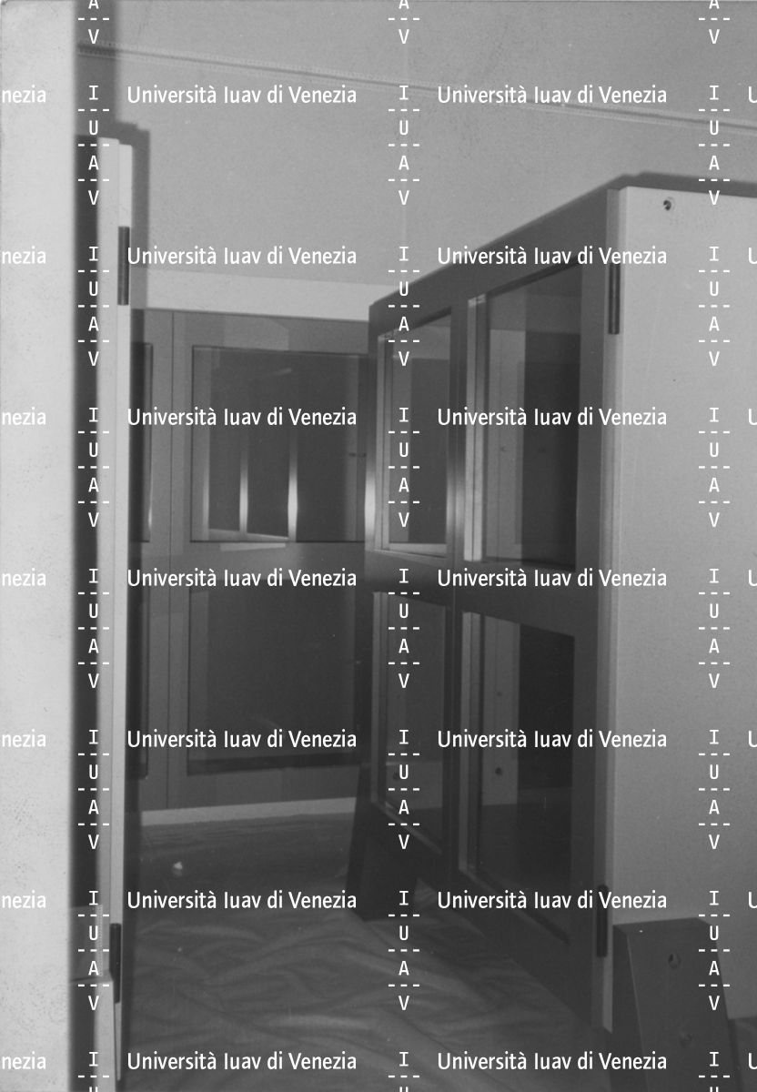 [Credenza con gambe inclinate di Luca Meda esposta alla mostra Architettura Idea, XVI Triennale di Milano]