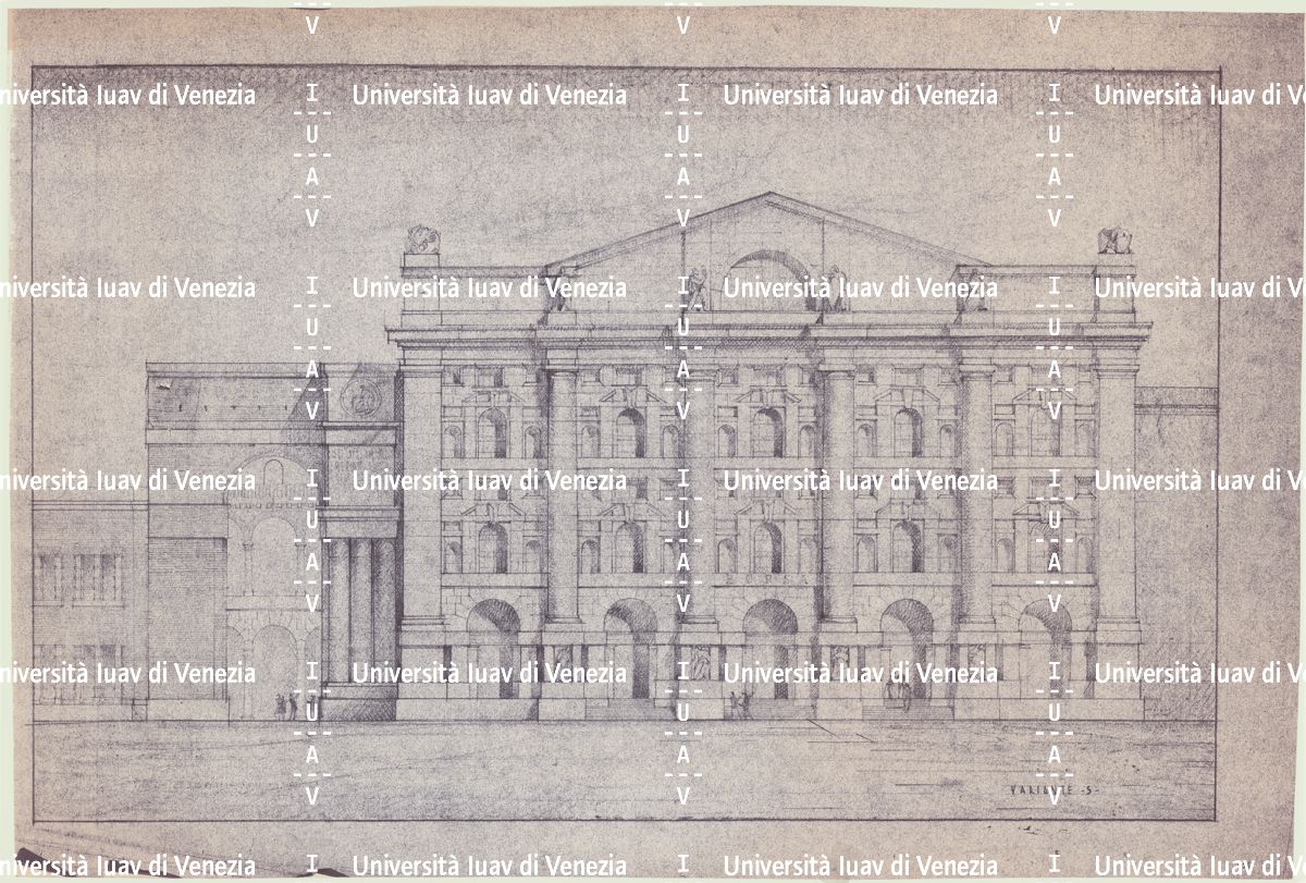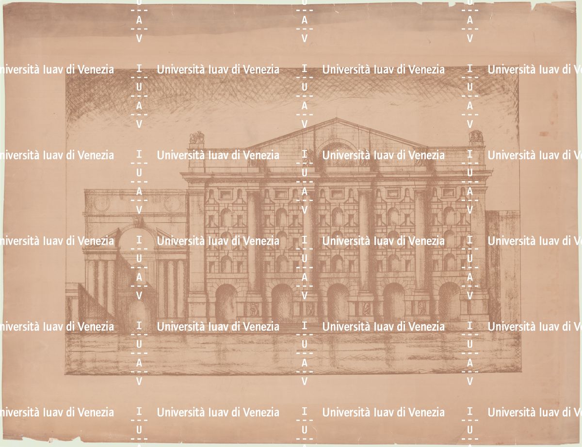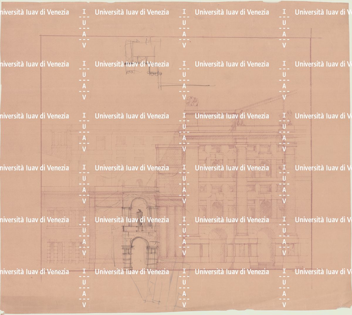 12. 1 disegno con ampio strappo. Due disegni con studio delle zone d'ombra proiettate dai fabbricati a SO della Via San Vittore al teatro sul Palazzo delle Borse con diverse ipotesi.