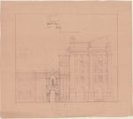 9. Dis. n. 2074 gennaio 1928 Facciata principale scala 1:50, matita e china su lucido, strappata sulla parte superiore.