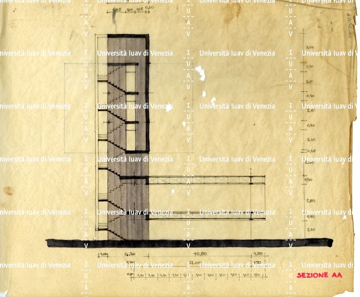 71 disegni: 8 aprile 1970, siglati e numerati, con annotazione "Disegni piccoli 1:50 a matita, livelli 1/2/3/4/5", disegni preparatori alle tavole, matita su carta vegetale, Bruno Morassutti (in scatola 33).