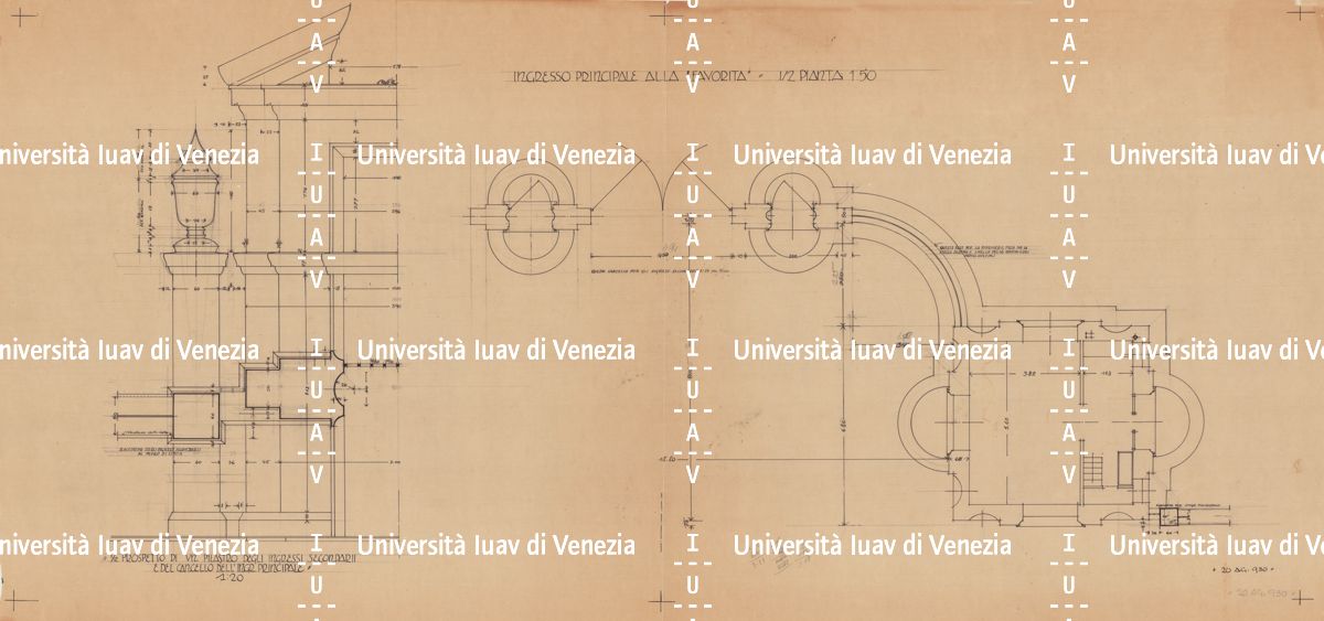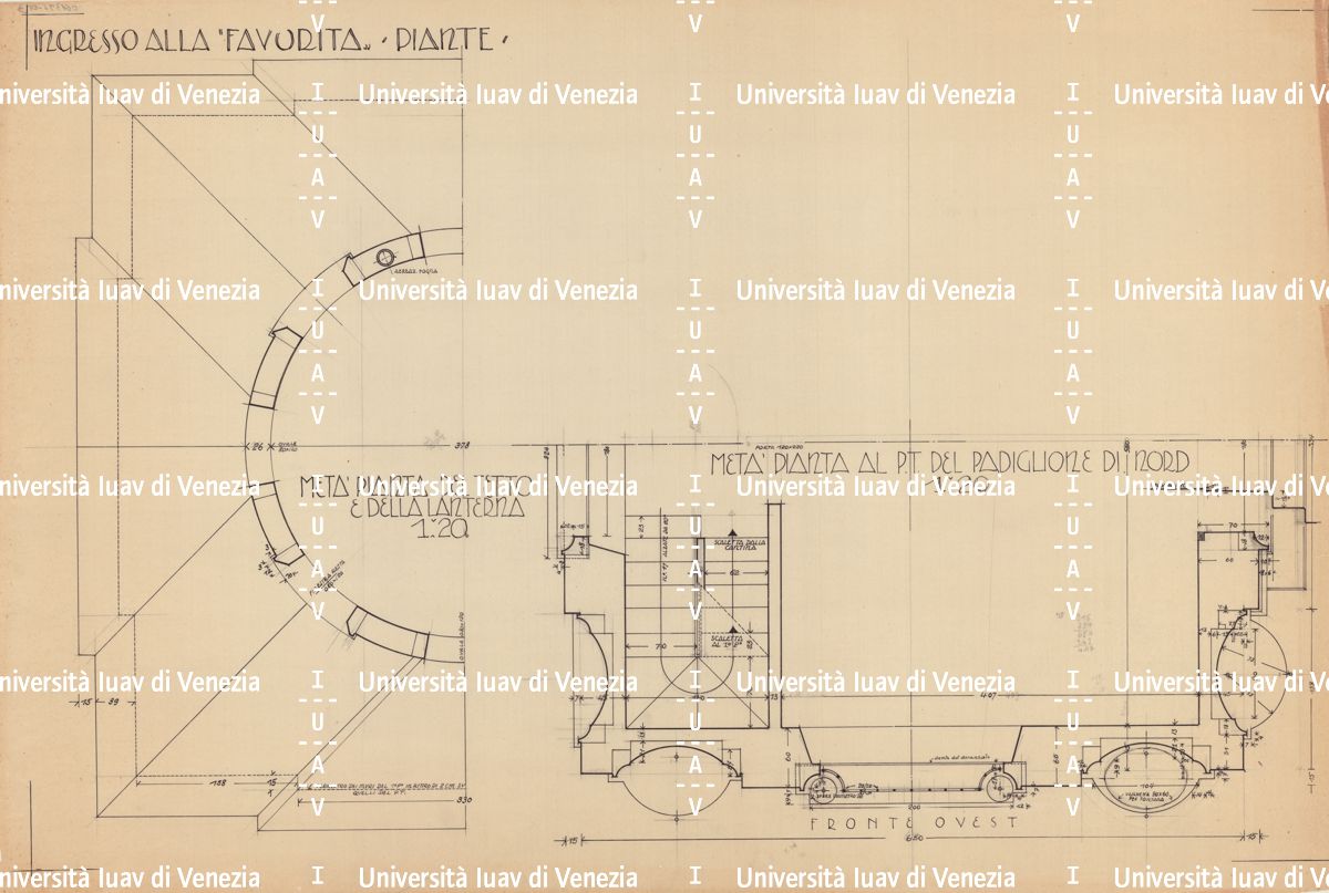 8. cartellina: 15 disegni di piante, sezioni e particolari dei padiglioni d'ingresso e delle ringhiere di cinta eseguiti ad inchiostro di china su carta da lucido, 1:20, 1:10 e 1:1, 1930.