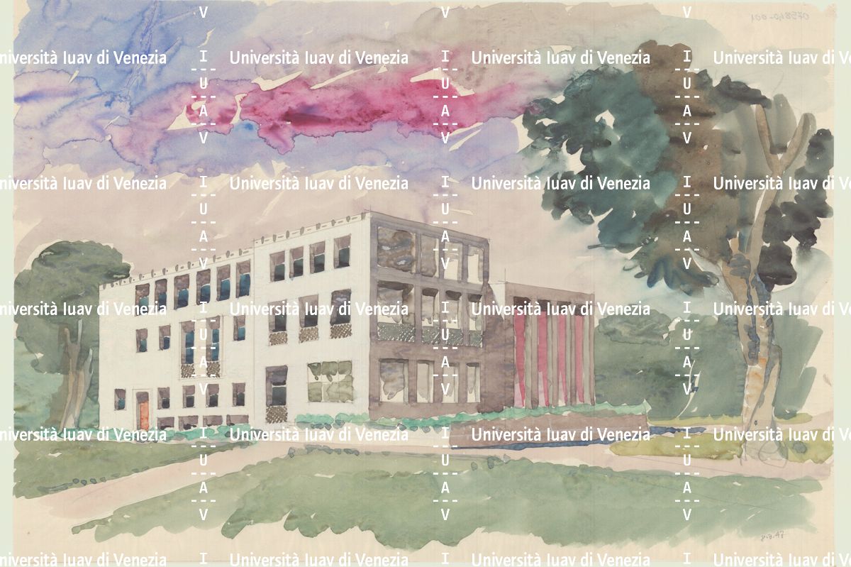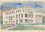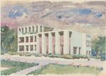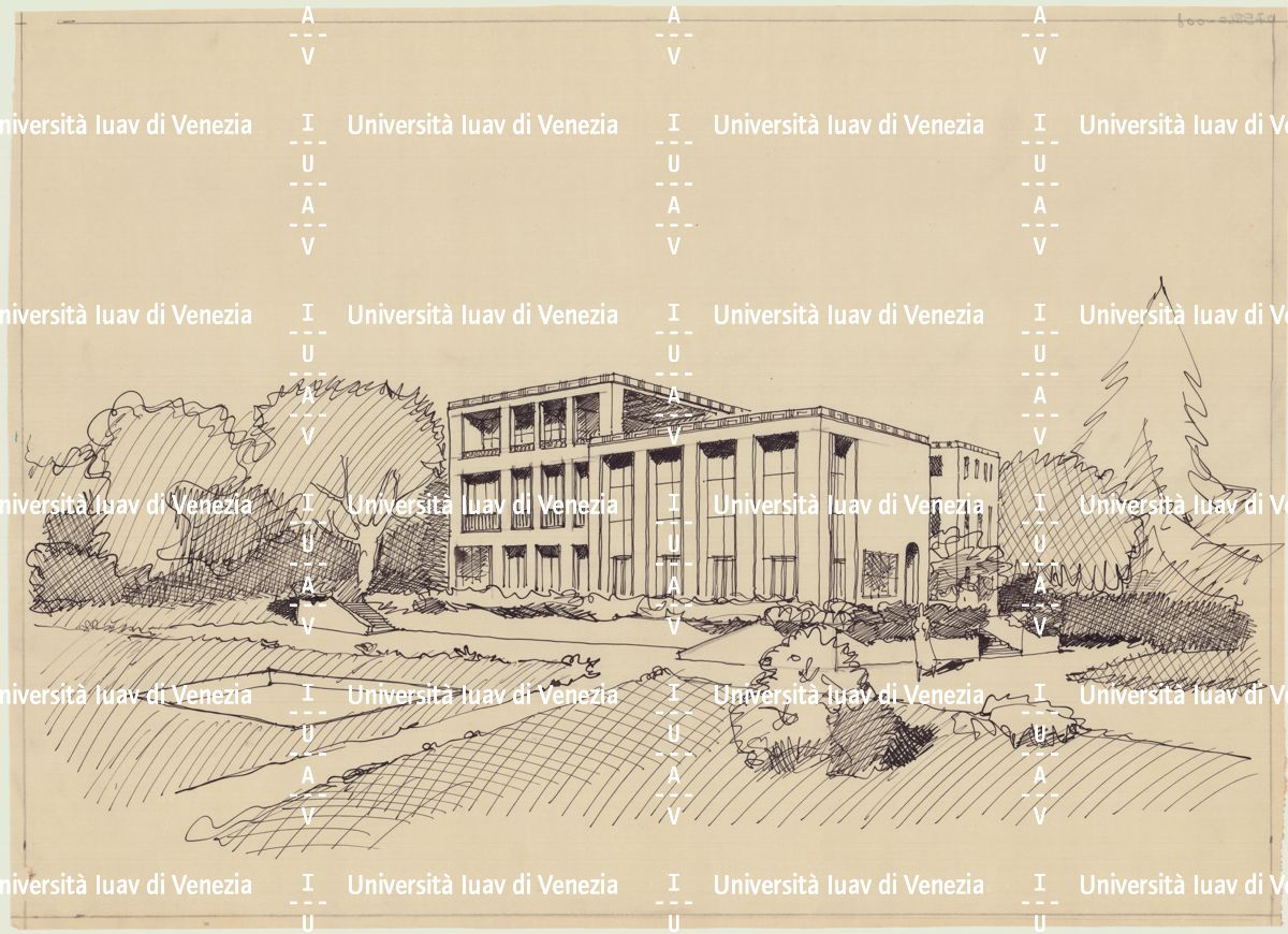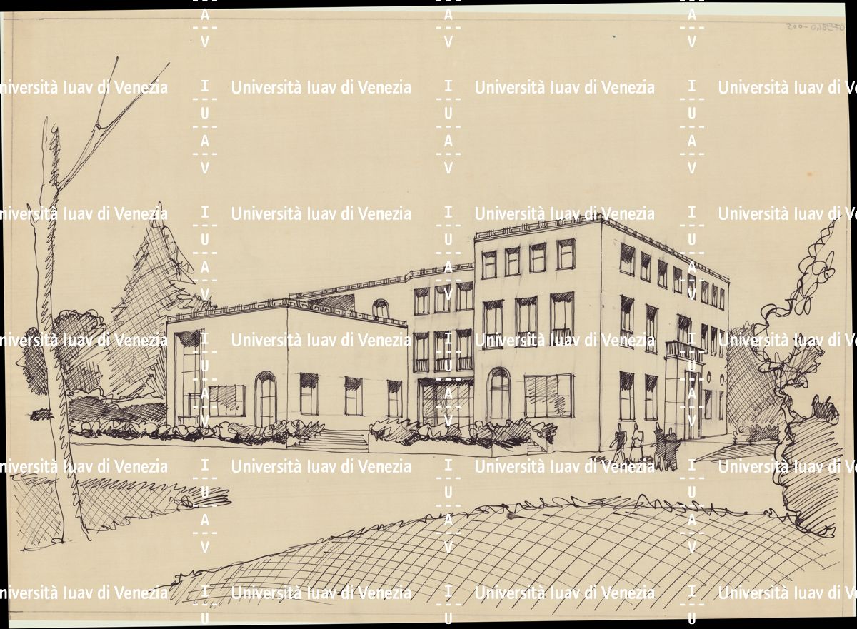 17. cartellina: vedute prospettiche di varie soluzioni, 4 disegni ad acquerello su carta (8 marzo 1947), 2 disegni a pastelli colorati su copia eliografica, 6 disegni ad inchiostro di china su carta da lucido, 20 febbraio 1948 (cartella 153).
