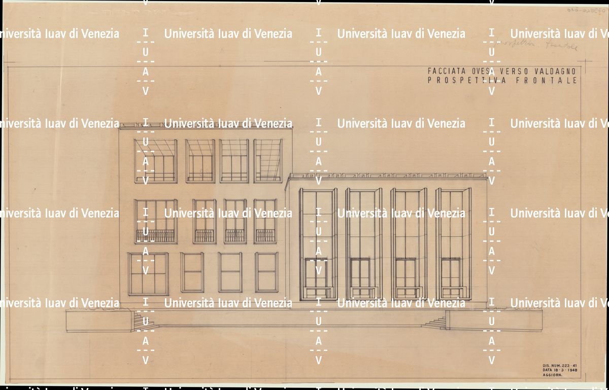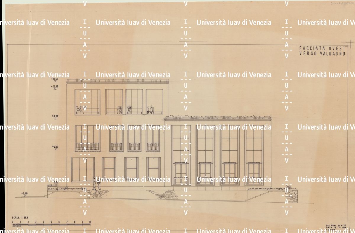 20. cartellina: 24 disegni dei prospetti verso Valdagno, il giardino d'arte, il giardino degli sports e verso Monte eseguiti ad inchiostro di china su carta da lucido e 3 in copia eliografica su cartoncino, s.d. (cartella 153).