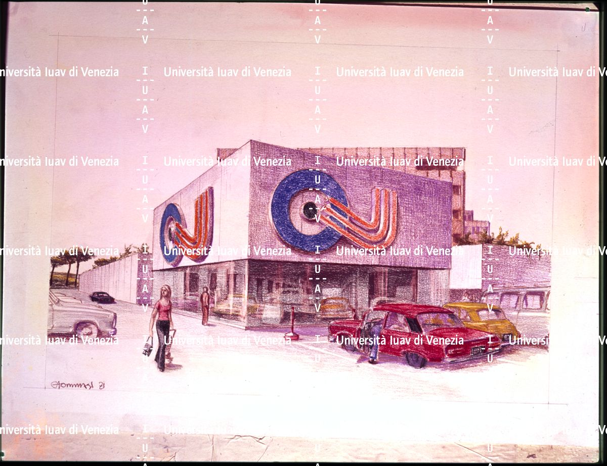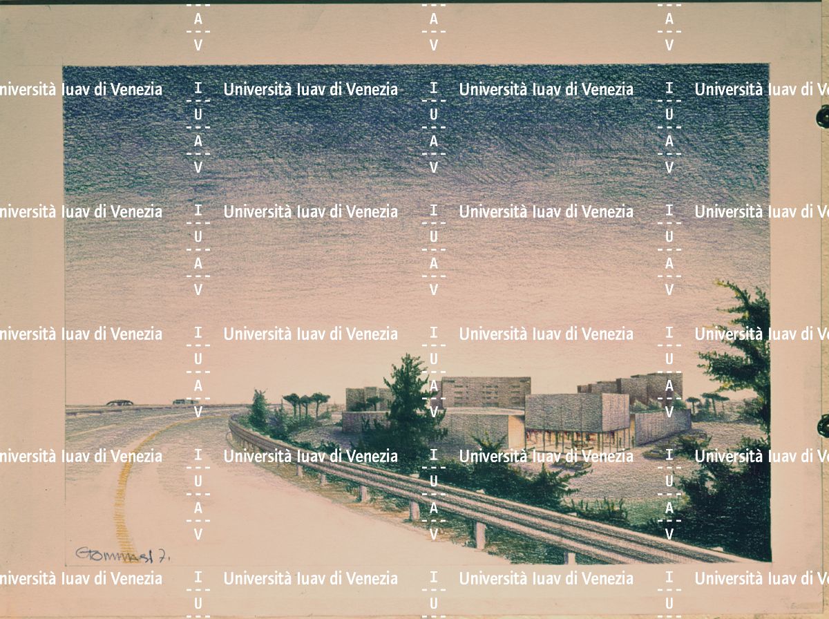 [Modello e riproduzioni di disegni del progetto di Ignazio Gardella per un centro alberghiero e commerciale alla Magliana, Roma]
