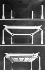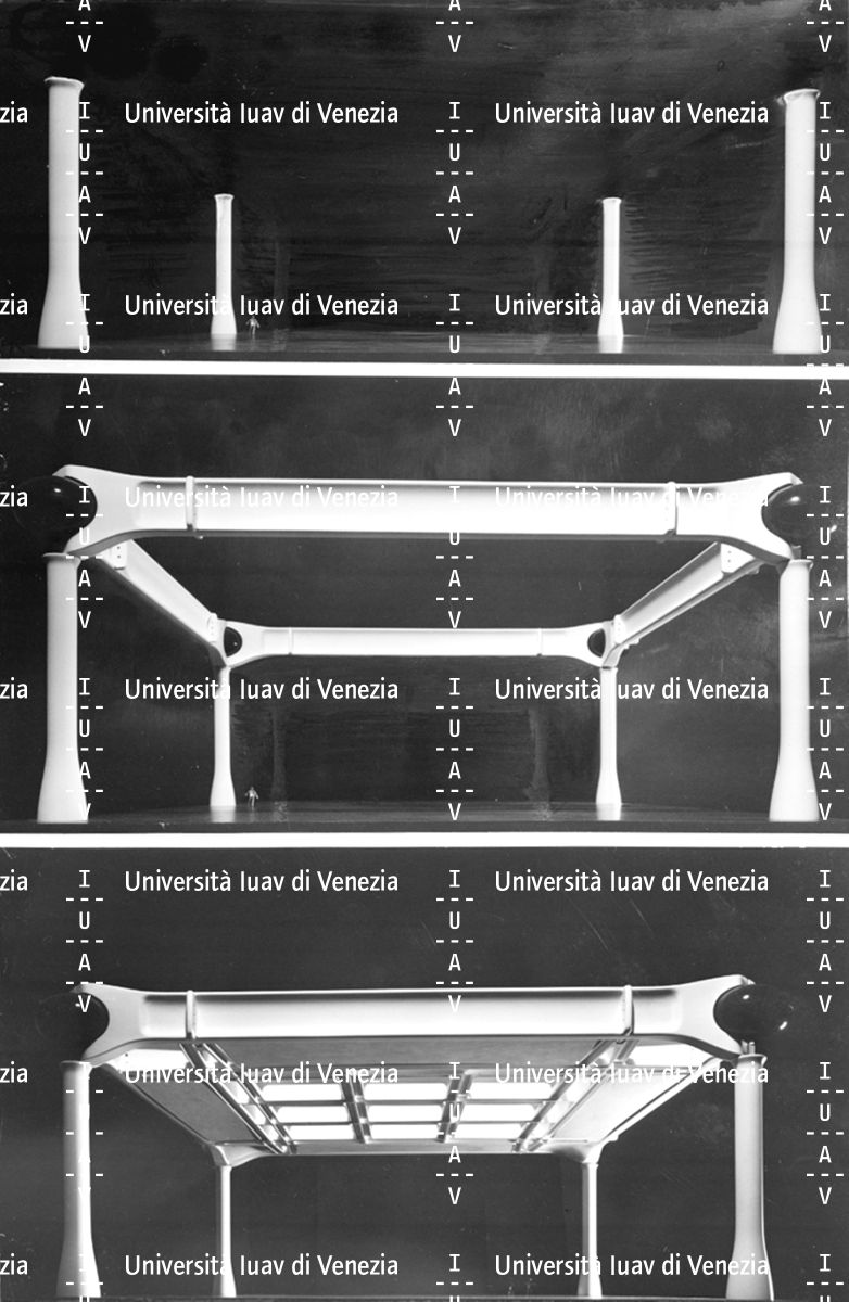 [Modello e disegni del progetto di Angelo Mangiarotti, Enrico Bona, Tono Morganti per una megastruttura a maglia quadrata in cemento armato precompresso]