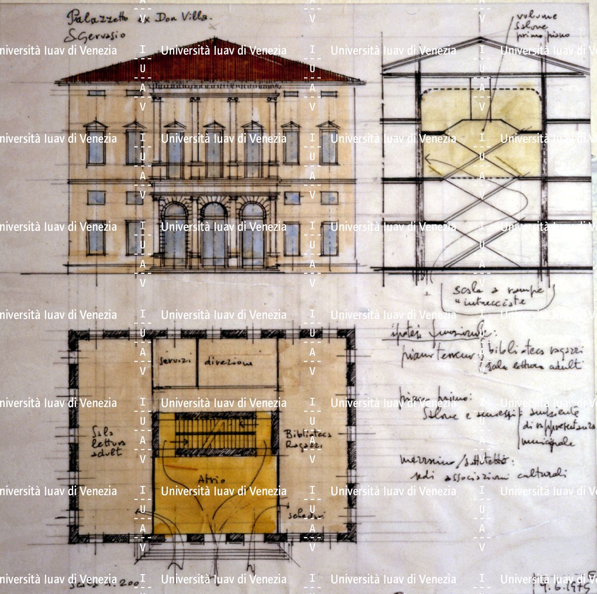 [Tavole del progetto per il PRG di Capriate San Gervasio e disegni relativi al palazzetto ex Don Villa, San Gervasio]