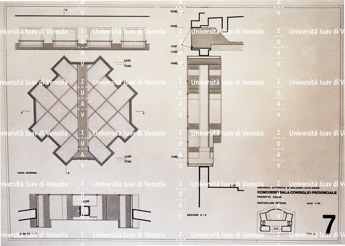 [Riproduzioni di disegni del progetto di Jacopo Gardella per la sala del consiglio provinciale di Bolzano]
