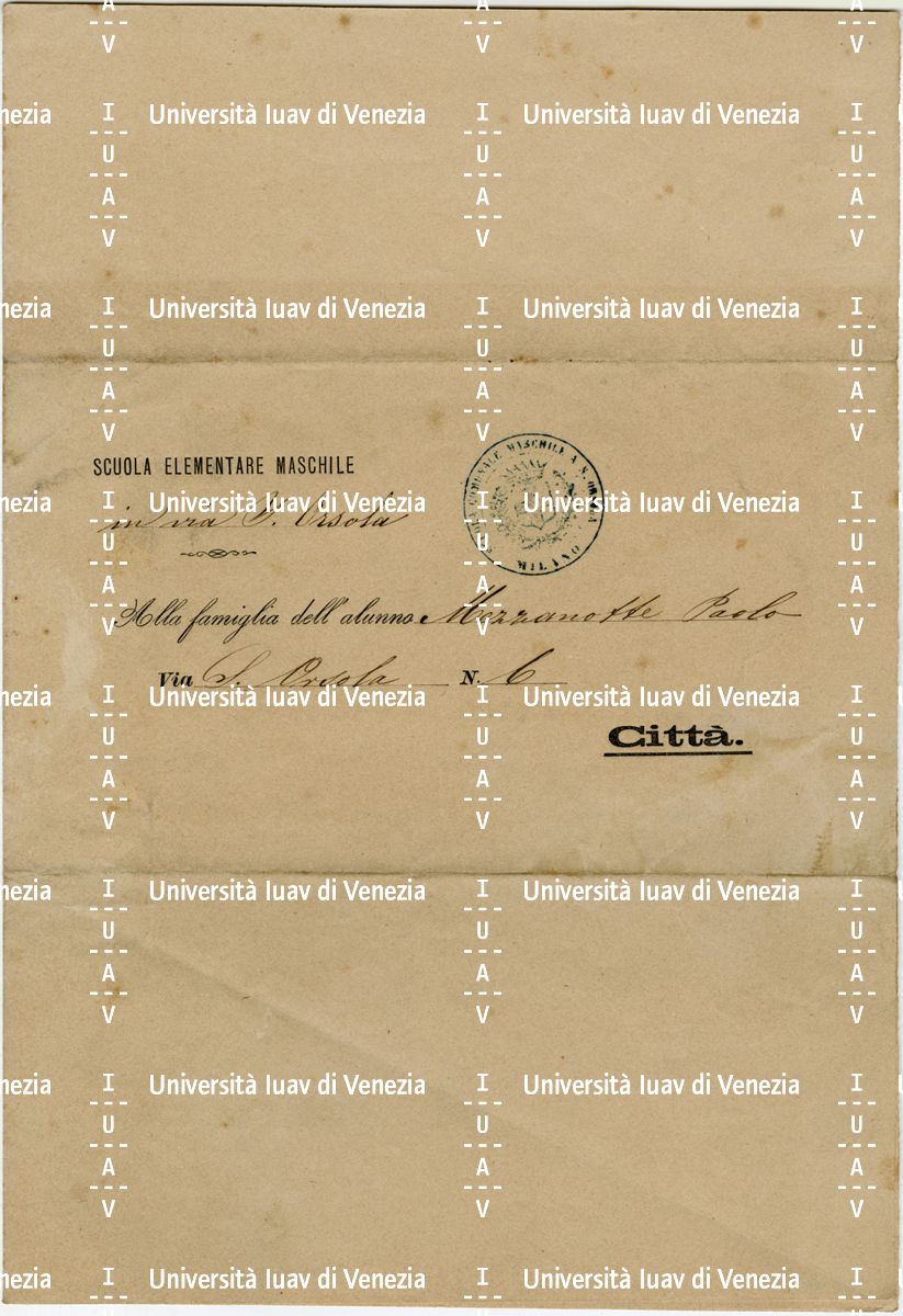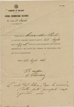 1.Comune di Milano - Menzione onorevole quale alunno della seconda classe elementare anno scolastico 1885-86 - 25 luglio 1886 + lettera di convocazione per la distribuzione dei premi.